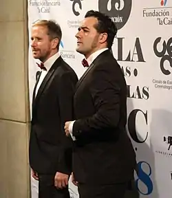 Alberto López con Alfonso Sánchez, «Los Compadres», en la ceremonia de la 73 edición de las Medallas del Círculo de Escritores Cinematográficos.