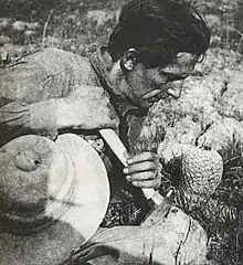 - En esta fotografía especialmente realizada, Alberto Frič y dos policías militares representan (como en el teatro) una acción prohibida: recolección de peyote. Sin embargo, el lophophora fricii no tiene propiedades alucinógenas (a diferencia del lophophora williamsii).