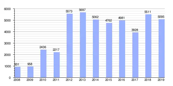 | Gráfica de evolución de Deuda viva del Ayuntamiento de Alcalá de los Gazules entre 2008 y 2019 |