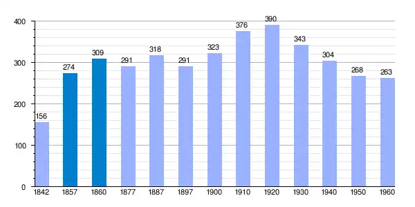 | Gráfica de evolución demográfica de Alcubillas del Marquéz[5] entre 1842 y 1960 |