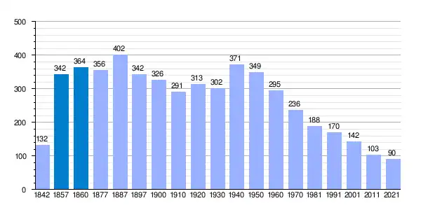 Población de derecho según los censos de población del INE. Población de hecho según los censos de población del INE.Entre el Censo de 1857 y el anterior, crece el término del municipio porque incorpora a 425096 (Ribarroya) y 425107 (Tapiela).[8] |