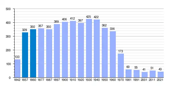 | Gráfica de evolución demográfica de Aldeanueva de la Serrezuela[6] entre 1842 y 2021 |