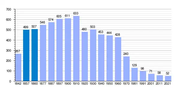| Gráfica de evolución demográfica de Aldehorno[1] entre 1842 y 2021 |