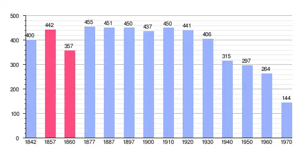 | Gráfica de evolución demográfica de Aldehuela[11][12] entre 1842 y 1970 |