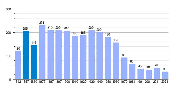 | Gráfica de evolución demográfica de Aldehuela de Periáñez[6] entre 1842 y 2021 |