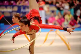 - Ejercicio de 3 cintas y 2 aros en la calificación de Londres 2012