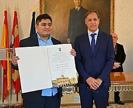 El 17 de octubre del 2023 fue nombrado Huésped Distinguido de la ciudad de Salamanca, España, en reconocimiento a su trayectoria literaria, convirtiéndose en la persona más joven en recibir dicha distinción del Ayuntamiento salmantino.[21]