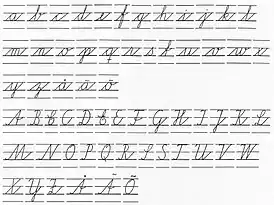 Contiene las 26 letras del alfabeto latino. Los dígrafos ch y ll son considerados la suma de dos letras (c+h y l+l).