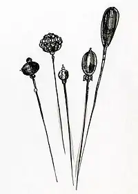 Wikimedia Commons alberga una categoría multimedia sobre Alfiler de sombrero.- Alfiler expuesto en el Met
