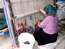 En los hogares tradicionales, las mujeres y las niñas utilizan el tejido de alfombras y kilims como un pasatiempo, así como un medio para ganar dinero. Las mujeres aprenden sus habilidades de tejer muy jóvenes, necesitando semanas o meses para completar las alfombras de pelo y los kilims de tejidos planos que fueron creados para su uso en la vida cotidiana. Como es cierto en la mayoría de las culturas del tejido, tradicionalmente son mujeres y niñas artesanas las tejedoras.[60][61]