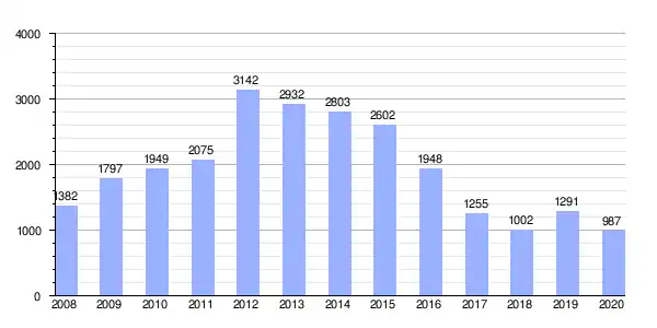 | Gráfica de evolución de Deuda viva del Ayuntamiento de Algarrobo entre 2008 y 2020 |