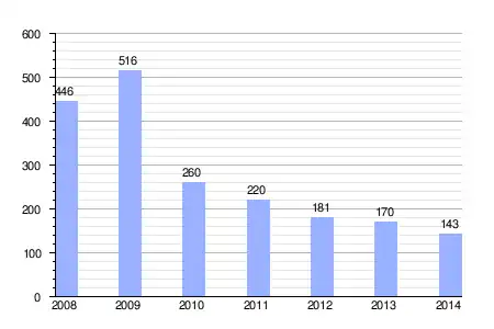 | Gráfica de evolución de la deuda viva del ayuntamiento entre 2008 y 2014 |