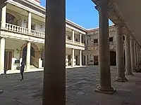 La Alhóndiga de Granaditas es un edificio construido en la ciudad de Guanajuato, en el estado de Guanajuato, México, a finales del siglo XVIII, en tiempos del virreinato, empleado en un principio como almacén y comercio de granos (es decir, una alhóndiga).[1][2] Fue uno de los principales y primeros escenarios de la lucha de independencia de México, ya que durante el ataque por el ejército insurgente a la ciudad de Guanajuato, en su interior se refugiaron familias peninsulares y se acuartelaron las tropas realistas, por lo que fue asediado por las tropas rebeldes capitaneadas por Miguel Hidalgo y Costilla e Ignacio Allende,[3] ataque que duró hasta que fue tomado el edificio y masacrados sus ocupantes (en su mayoría civiles), el 28 de septiembre de 1810, gracias a un personaje conocido como Juan José de los Reyes Martínez Amaro, apodado El Pípila, quien permitió el acceso a la alhóndiga incendiando sus puertas, tras pasar por una lluvia de balas cubriéndose la espalda con una losa de piedra.[4] Desde 1958 funciona en el edificio el Museo Regional de Guanajuato Alhóndiga de Granaditas