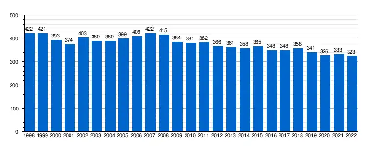 | Gráfica de evolución demográfica de Aliaga[15] entre 1998 y 2022 |