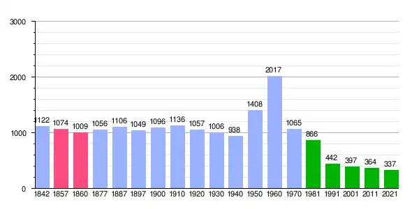 | Gráfica de evolución demográfica de Aliaga[13][14] entre 1842 y 2021 |