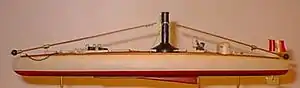 La máquina estaba en el centro, hacia proa, y recibía vapor de una caldera cilíndrica con un serpentín en espiral, un sistema de caldera de vapor de seguridad patentado por Herreshoff en 1876.