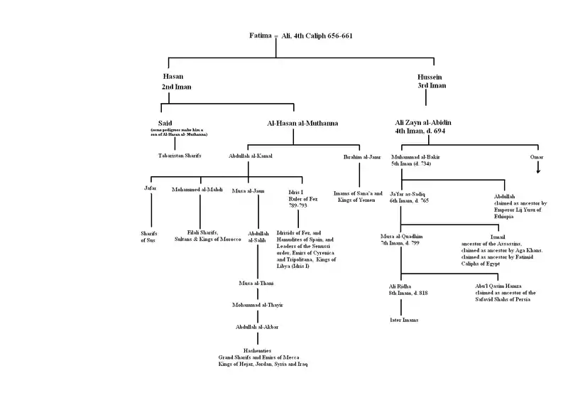- Descendientes de Ali ibn Abi Talib (Dynastie des Alides, en francés):