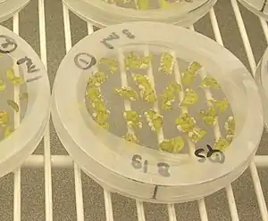 La ingeniería genética o tecnología del ADN recombinante es la ciencia que manipula secuencias de ADN (que normalmente codifican genes) de forma directa, posibilitando su extracción de un taxón biológico dado y su inclusión en otro, así como la modificación o eliminación de estos genes. En esto se diferencia del mejoramiento genético clásico basado en la selección, que modifica los genes de una población de forma indirecta, mediante cruces dirigidos.[8] La primera estrategia, de la ingeniería genética, se circunscribe en la disciplina denominada biotecnología vegetal. Cabe destacar que la inserción de grupos de genes y otros procesos pueden realizarse mediante técnicas de biotecnología vegetal que no son consideradas ingeniería genética, como puede ser la fusión de protoplastos.[9]