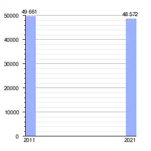 | Gráfica de evolución demográfica de Almada, Cova da Piedade, Pragal e Cacilhas entre 2011 y 2021 |