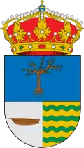 «Escudo cortado y medio partido. Primero de azur con un almendro al natural, arrancado, frutado y deshojado. Segundo, de plata un pontón o barquilla de su color. Tercero, de oro con cuatro fajas ondeadas de sinople. Timbrado de la Corona Real Española»Boletín Oficial de Castilla y León nº 6 de 11 de enero de 1994[15]