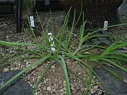 Tiene tallos erectos de 1 - 3 de alto. Las hojas son erectas, de 50 cm de largo. La inflorescencia erecta, alcanza un tamaño de 75 cm de altura.[3]