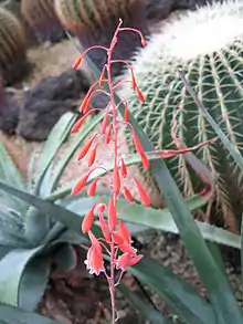 Es una planta suculenta que crece formando rosetas desde la base, las largas hojas (alrededor de 25 cm) de color verde marmolado están festoneadas por pequeños dientes. La inflorescencia, que surge de un largo tallo, está formada por un racimo de pequeñas flores pendulares en forma de campana, de color rosa más o menos oscuro.[5]