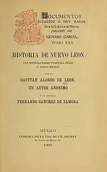 «Relación y Discursos del Descubrimiento, Población y Pacificación del Nuevo Reino de León, temperamento y Calidad de la Tierra», dirigidos por al Illmo. St. Du Juan de Mañosca, Inquisidor del Santo Oficio de la Nueva España año de 1690. Se conservan en los archivos del Consejo de Indias así como en la biblioteca de la Universidad de México.