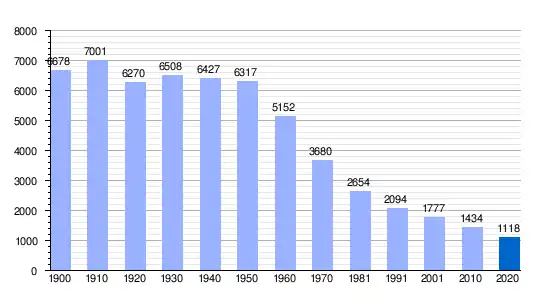 Población de derecho (1900-1991) o población residente (2001, 2010) según los censos de población del INE.      Población según el padrón municipal de 2020 del INE.
