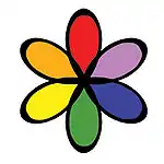 Esta rueda de colores muestra en los radios opuestos de que color aparecerá un compuesto si sólo absorbe un único color en el espectro visible. Por ejemplo, si el compuesto absorbe la luz de color rojo, aparecerá de color verde.