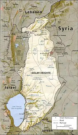 ![]() Vista satelital de la meseta del Golán | ||