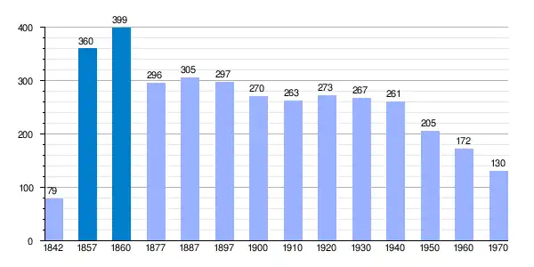 | Gráfica de evolución demográfica de Altrón[1] entre 1842 y 1970 |