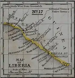 De la mano de los esfuerzos de la American Colonization Society y de la administración del presidente estadounidense James Monroe, los antiguos esclavos, aproximadamente 12.000, devenidos pioneros y colonos en las costas africanas, extendieron su influencia sobre el área,[3] adquiriendo territorios costeros a los nativos, y avanzando hacia el interior, llegaron a formar en 1847 la nueva nación de Liberia,[4] ejerciendo como élite política y cultural, fundamentalmente basada en modelos lingüísticos y sociales del Sur de los Estados Unidos.[5]