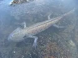 El ajolote de Alchichica (Ambystoma taylori), también conocido como salamandra de Taylor,[2] es una especie de anfibio caudado (salamandras, ajolotes y parientes)[2] de la familia Ambystomatidae. La especie es endémica del estado de Puebla, en donde su único hábitat existente es la laguna de Alchichica, en el lago cráter salino al oeste del estado de Puebla, a una altitud de 2,290 m s. n. m.,[2] Mide alrededor de 18 a 25cm, incluyendo la cola.[3] Su cabeza es un poco más ancha que larga, miembros relativamente largos, dedos cortos y cola corta. El desarrollo de la especie está asociado a vegetación con presencia de yaca, nopal, choya, maguey, encino y matorral espinoso.[2] Se encuentra en peligro de extinción (IUCN) dada su reducida área de distribución y a la sobreexplotación del agua de la laguna para usos agrícolas, que ha llevado a su salinización.[1] Otros riesgos que le amenazan son la contaminación (descargas de aguas residuales y de fertilizantes y pesticidas en su hábitat) y la transformación del lago. En México la NOM-059-SEMARNAT-2010 considera a la especie como sujeta a protección especial.[2]