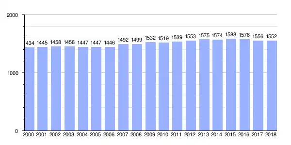 | Gráfica de evolución demográfica de Ames entre 2000 y 2018 |