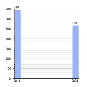 | Gráfica de evolución demográfica de Amieira e Alqueva entre 2011 y 2021 |