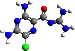 La amilorida es un fármaco diurético del tipo ahorradores de potasio, que se administra en el tratamiento de la hipertensión y en la insuficiencia cardíaca congestiva. El uso terapéutico de este medicamento fue aprobado en 1967.[2]