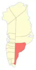 Ubicación de la municipalidad de Ammassalik en Groenlandia.
