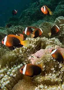 El pez payaso canela (Amphiprion melanopus) es una especie de peces de la familia Pomacentridae.
