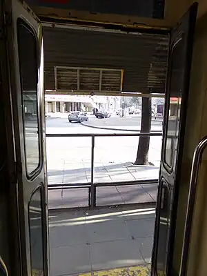 ![]() Puerta de un tranvía detenido en la estación. | |||||||||