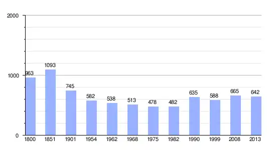 | Gráfica de evolución demográfica de Ance-Féas entre 1800 y 2013 |