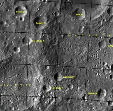 Andronov es un pequeño cráter de impacto lunar que se encuentra en el exterior del borde suroeste de la llanura amurallada llamada Gagarin. Se localiza en el hemisferio sur de la cara oculta de la Luna, y no se puede ver directamente desde el Tierra. Justo al oeste de Andronov está el cráter Levi-Civita.