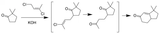 La reacción de Wichterle es una variante de la anulación de Robinson que reemplaza la metil vinil cetona con 1,3-dicloro-cis-2-buteno.[2][3][4]