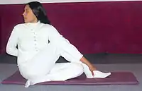 | ardha matsyendrāsana | ardha: ‘medio, mitad’; Matsyendra: ‘rey de los peces’, uno de los creadores del yoga | media torsión | ![]() Ardha matsyendrāsana o «media torsión». | |