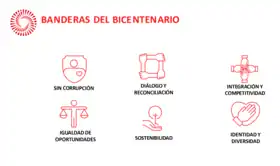 Las Banderas del Bicentenario reflejan las bases y metas del Perú al 2021, estas son:[1]