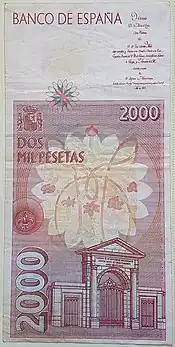 | 2000 pesetas | Juan Ramón Jiménez | Rojo | 80 x 147 mm | ![]() |