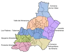 Las comarcas de Andalucía, una comunidad autónoma española, están previstas en su estatuto de autonomía, pero no están definidas oficialmente. A expensas de otras comarcalizaciones o límites comarcales, y teniendo en cuenta la no oficialidad de éstas hasta que se desarrolle una legislación sobre sus competencias, a continuación se detalla un listado de las comarcas andaluzas agrupadas por sus respectivas provincias de pertenencia. La comarcalización mostrada sigue el catálogo elaborado por la Consejería de Turismo y Deporte de la Junta de Andalucía (BOJA del 27 de marzo de 2003), según la cual la comarca es «un espacio geográfico con unas características naturales homogéneas, donde se producen unas relaciones sociales de inmediatez y cercanía, y que presentan unas características naturales, económicas y sociales comunes y unos mismos intereses».
