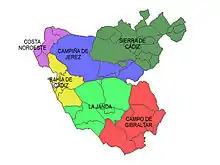- Junta de Andalucía. «Orden de 14 de marzo de 2003, por la que se aprueba el mapa de comarcas de Andalucía a efectos de la planificación de la oferta turística y deportiva» (pdf). Consultado el 16 de enero de 2009.