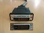 Digital Visual Interface (DVI). Las 5 variantes son: DVI-I de enlace único, DVI-I de doble enlace, DVI-D de enlace único, DVI-D de doble enlace, y DVI-A. | Casi en todas partes de modernas tarjetas de video de computadora. | |