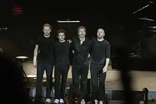 ![]() Coldplay en un concierto en el Verizon Wireless Amphitheater en Bonner Spring, Kansas el 21 de septiembre de 2005. | ||
