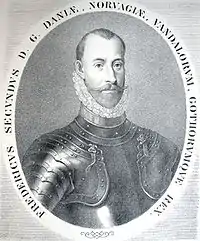 | Valdemar II el Victorioso | ![]() | 9 de mayo o 28 de junio de 1170 | 1183-1216 | 28 de marzo de 1241 | Estridsen | Dagmar de Bohemia 1205 un hijo Berenguela de Portugal 1214 cuatro hijos | titulado dux slesvicensis[4] (esto es, duque Sleswickiano), representado por el regente obispo Valdemar Knudsen (1182–1193), Valdemar II se convirtió en rey danés en 1202. |